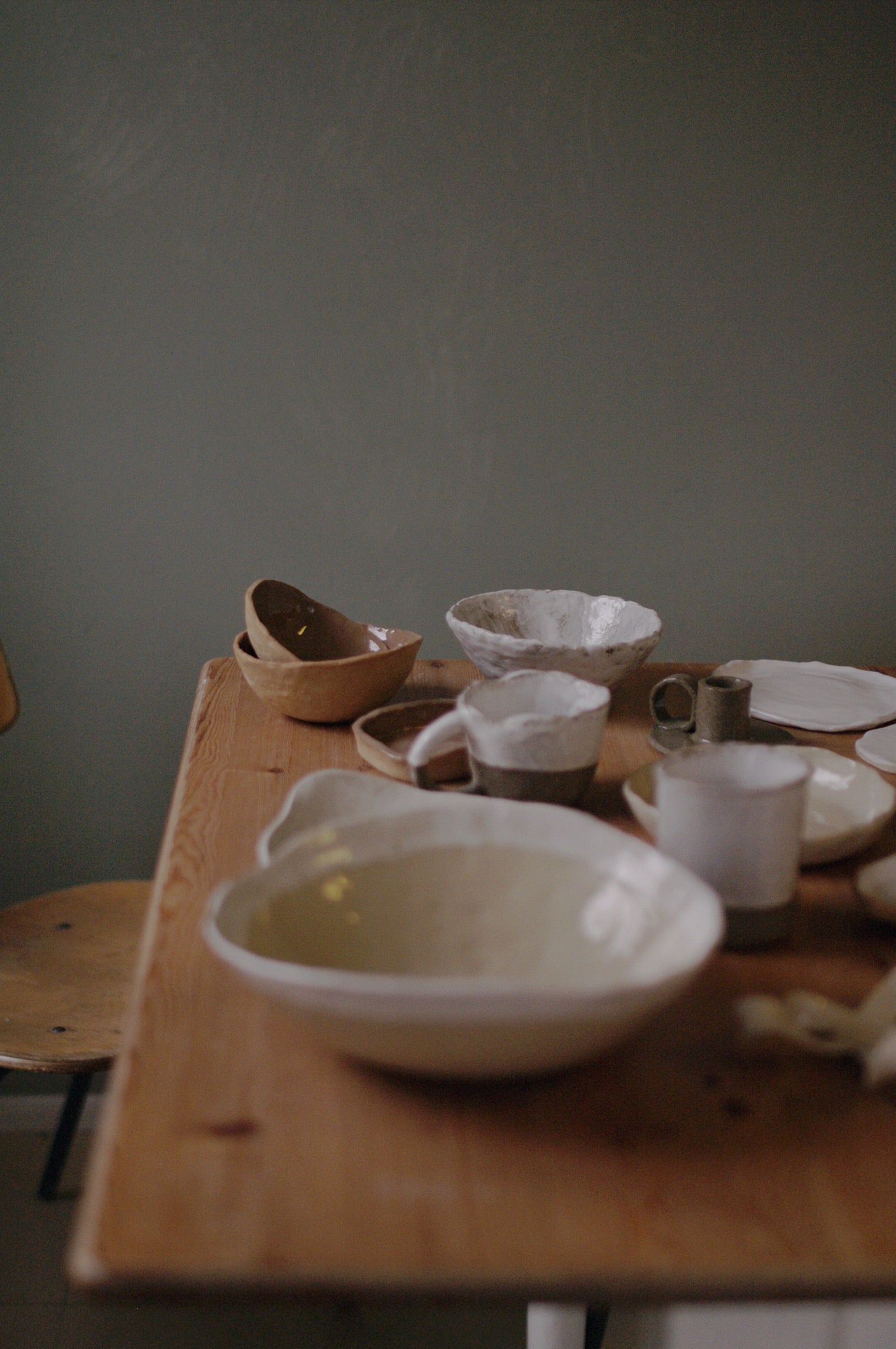 Iltapäivän päätteeksi työt jäävät studiolla kuivumaan ja odottamaan polttoja sekä läpinäkyvää lasitekerrosta. Kaikista töistä tulee elintarvikekelpoiset ja ne ehtivät jouluksi kotiin.